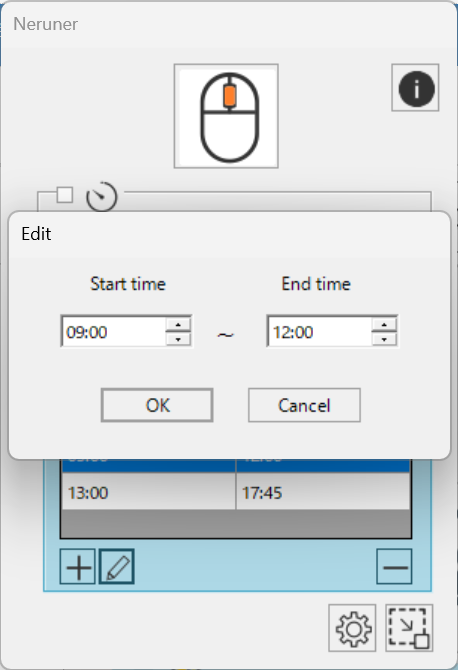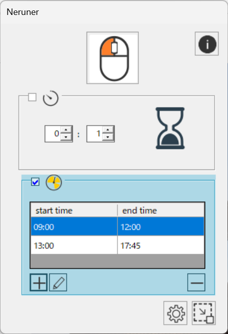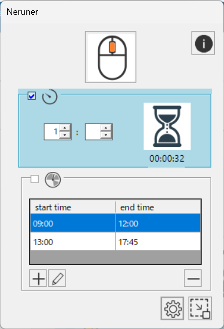Nerunerは動作時間を指定できるマウスジグラーアプリケーションです。