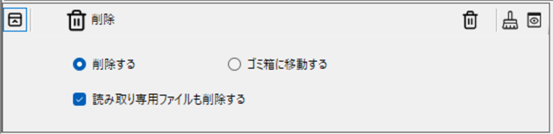 削除するファイルを 完全に削除する か、ゴミ箱に移動する かを指定します。