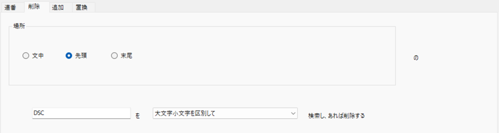 | 先頭 | ファイル名の先頭に指定文字列があれば、その部分を削除します。 |