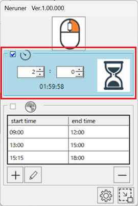 - チェックを ON した瞬間にタイマーが起動するため、時刻を設定してからチェックを ON にしてください。