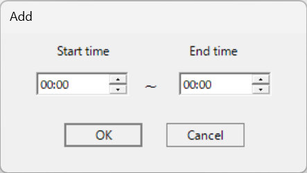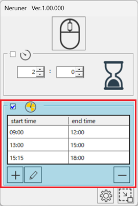 指定時間帯は、追加(+)、編集(えんぴつ)、削除(-)ボタンを使って編集します。
